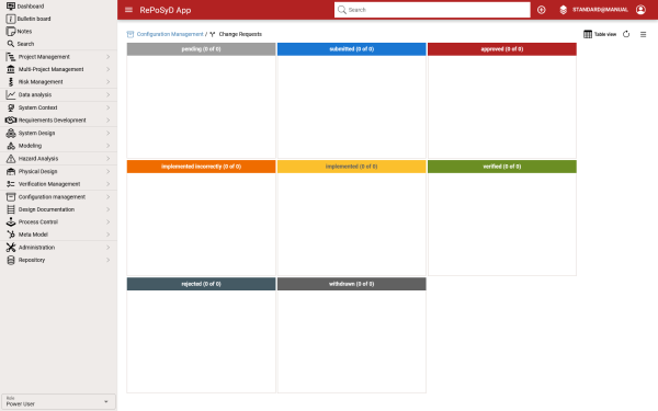 A change request is part of the formalized change management process in configuration management and describes a single change to the design data in RePoSyD.